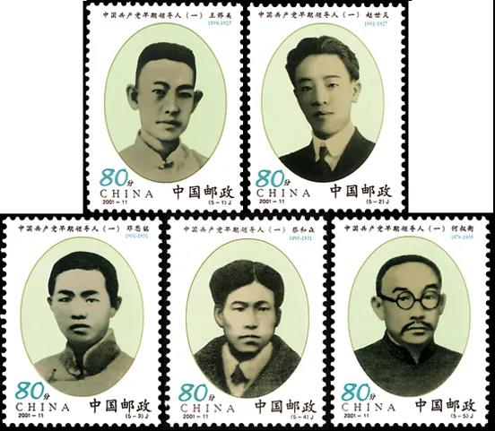 中國共產黨早期組織的創(chuàng)建者和早期領導人王盡美、趙世炎、鄧恩銘、蔡和森、何叔衡,就是這些千千萬萬個共產黨員中的杰出代表。為深切緬懷這些革命先驅者的光輝業(yè)績,學習繼承和發(fā)揚他們的崇高精神,國家郵政局特于2001年6月28日發(fā)行了《中國共產黨早期領導人(一)》郵票一套5枚。