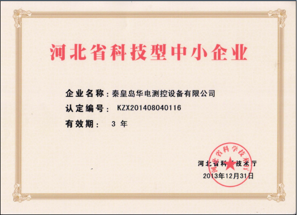 公司被河北省科學技術廳認定為“河北省科技型中小企業(yè)”,認定編號為:KZX201408040116,并頒發(fā)證書。