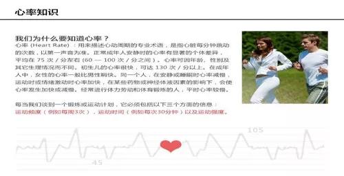 第四,關(guān)于心率與健康。心率,是指正常人每分鐘心跳的次數(shù),一般成人正常情況下為60~100次/分。心率也是十分重要,因?yàn)樾呐K就是人體的“發(fā)動(dòng)機(jī)”,心臟沒了心率,就是沒了心跳,人的生命也就終止了,而如果這臺(tái)“發(fā)動(dòng)機(jī)”不能穩(wěn)定工作,也就意味著人體不能正常工作,就會(huì)出現(xiàn)健康狀況。