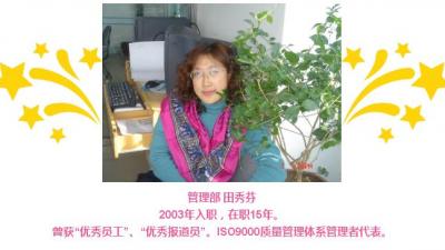 【“印象•華電”系列報道】難忘的ISO9000取證之旅” 2018-04-04管理部 田秀芬2003年入職,在職15年。曾獲“優(yōu)秀員工”、“優(yōu)秀報道員”。ISO9000質量管理體系管理者代表。 作為一名在職十五年的老員工,我與華電測控一路走來、共同成長,有很多美好的回憶和動人的故事,今天我要講More