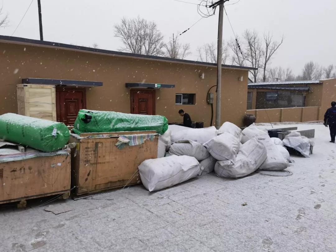 在風(fēng)雪中清點(diǎn)配件的工人們