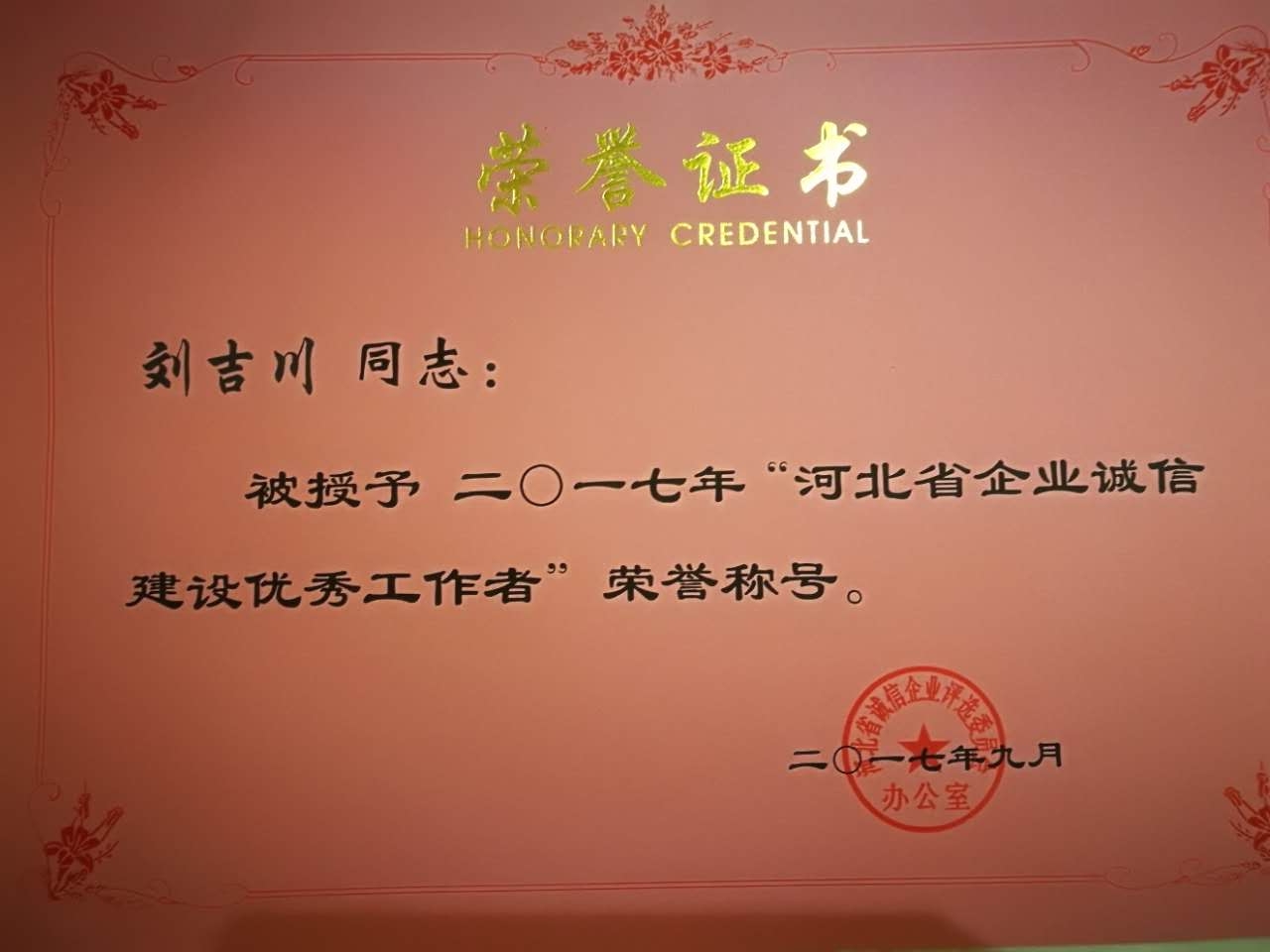 2017年9月25日,秦皇島華電測(cè)控設(shè)備有限公司管理部經(jīng)理賀敏代表公司赴省會(huì)石家莊參加了“河北省誠(chéng)信企業(yè)”及“河北省企業(yè)誠(chéng)信建設(shè)優(yōu)秀工作者”的表彰大會(huì)。大會(huì)隆重表彰了在誠(chéng)信生產(chǎn)、誠(chéng)信經(jīng)營(yíng)方面表現(xiàn)突出,成就卓越的企業(yè)。我公司以良好的企業(yè)信譽(yù)、卓越的品牌形象被評(píng)選為“河北省誠(chéng)信企業(yè)”;公司總經(jīng)理劉吉川先生被評(píng)為2017年“河北省企業(yè)誠(chéng)信建設(shè)優(yōu)秀工作者”!