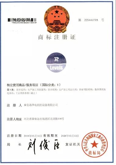 2017年1月,秦皇島華電測控設(shè)備有限公司正式將美國授權(quán)的rlevels商標(biāo)向中國國家商標(biāo)局提交申請注冊文件,經(jīng)商標(biāo)局嚴謹審核認證,近日獲得商標(biāo)注冊證:第22544618A,第1類,有效期為2018年03月14日至2028年03月13日。該商標(biāo)的注冊成功,標(biāo)志著公司已經(jīng)擁了41項自主知識產(chǎn)權(quán)。 秦皇島華電測控設(shè)備有限公司以誠信立業(yè),不斷開拓創(chuàng)新,經(jīng)過近二十年的發(fā)展,取得了多項榮譽,曾先后被授予“河北省高新技術(shù)企業(yè)”、“河北省著名商標(biāo)”、“河北省科技型中小企業(yè)”、“河北省省級信用優(yōu)良企業(yè)”、“河北省誠信中小企業(yè)”、“河北省中小企業(yè)技術(shù)創(chuàng)新示范企業(yè)”、“河北省對標(biāo)示范企業(yè)”、“河北省創(chuàng)新驅(qū)動發(fā)展示范企業(yè)”、“河北省企業(yè)文化建設(shè)示范單位”等榮譽稱號。 管理部 田秀芬報道