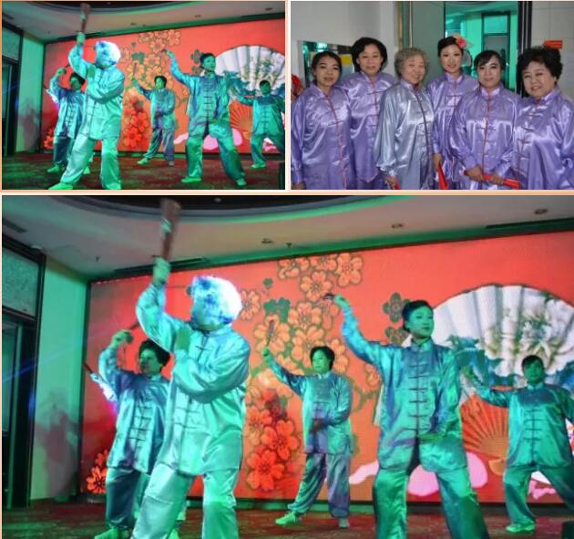 這張照片居中的一位神采奕奕、滿頭銀發(fā)的阿姨是我公司劉吉川總經(jīng)理的母親,也是我們的舞蹈老師劉老師。