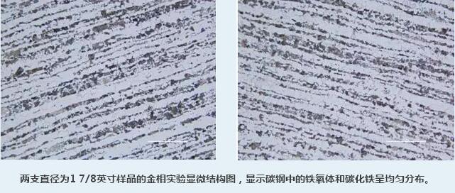 今年4月份,華電測控向美國電力公司交付了兩套高精度無盲區(qū)云母水位計,美國電力公司要求所有產(chǎn)品均應(yīng)符合SA106 Gr. B標準,安裝前進行了取樣,分別截取了兩支直徑為1 7/8英寸的樣品,進行了金相實驗和化學(xué)成分檢測;一支直徑為1英寸的樣品,進行化學(xué)成分檢測。