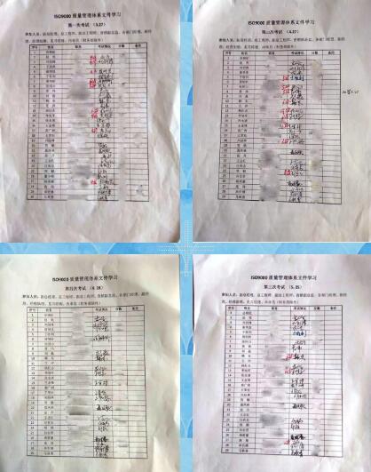 2018年2月,為了不斷提升公司質(zhì)量管理水平,管理部組織公司領(lǐng)導(dǎo)及各部門相關(guān)人員進(jìn)行ISO9001:2015版質(zhì)量管理體系程序文件、質(zhì)量手冊的學(xué)習(xí),制訂了詳細(xì)的學(xué)習(xí)計(jì)劃,采用自學(xué)體系文件的方式,并要求涉及到各部門的程序文件同時優(yōu)先學(xué)習(xí),每月25-30日之間組織進(jìn)行閉卷考試,內(nèi)容涉及到當(dāng)月學(xué)習(xí)內(nèi)容和各部門在工作中息息相關(guān)的內(nèi)容。