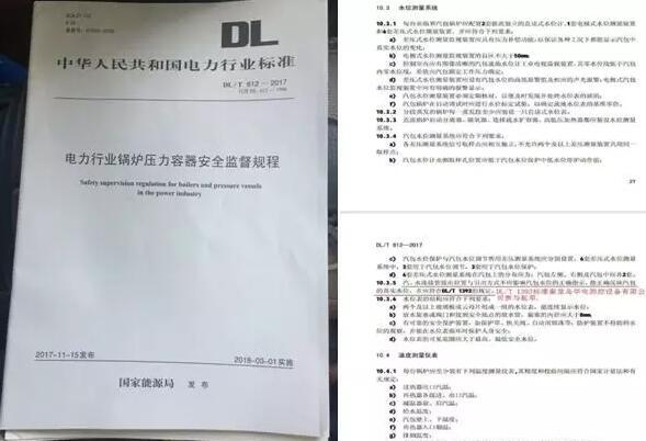 中華人民共和國電力行業(yè)標(biāo)準(zhǔn)《電力行業(yè)鍋爐壓力容器安全監(jiān)督規(guī)程》(DL/T 612-2017)(替代DL612-1996)于2017年11月15日由國家能源局發(fā)布,并于2018年3月1日實施。此規(guī)程規(guī)定了電力行業(yè)鍋爐壓力容器安全監(jiān)督要求,并在“10.安全保護裝置及儀表中10.3水位測量系統(tǒng)”引用了《火力發(fā)電廠鍋爐汽包水位測量系統(tǒng)技術(shù)規(guī)程》(DL/T1393-2014)部分內(nèi)容進行系統(tǒng)闡述。