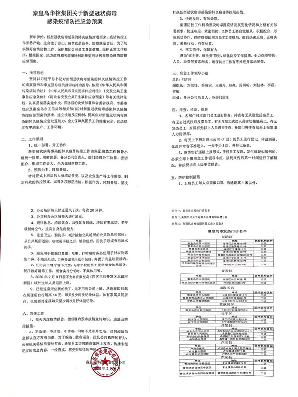 1月31日,根據(jù)河北省人民政府辦公廳下發(fā)的“關(guān)于延遲企業(yè)復工”的通知,秦皇島華控集團有限公司立即下發(fā)通知:將集團各下屬各分公司復工日期延長至2月10日。隨后集團再次下發(fā)通知,10號以后各分公司員工在家分散辦公、線上辦公,具體集中辦公時間等待通知,最大程度地降低員工間感染傳播的風險。