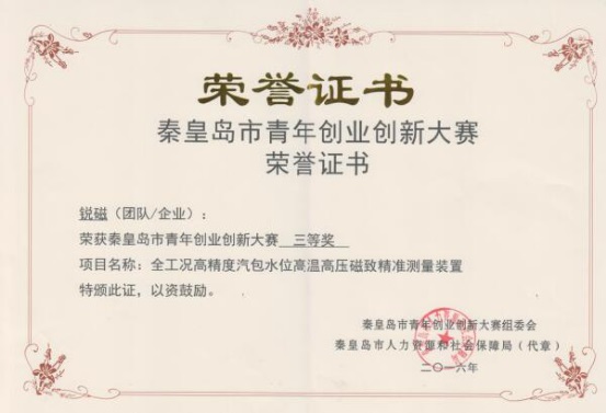 為給用戶提供更好的產(chǎn)品和服務(wù),華電測(cè)控始終致力于產(chǎn)品的研發(fā)和創(chuàng)新。早在2016年5月,公司組建“銳磁”和“新媒體”兩個(gè)團(tuán)隊(duì)參加秦皇島市青年創(chuàng)業(yè)創(chuàng)新大賽,其中“銳磁”團(tuán)隊(duì)的參賽項(xiàng)目為《全工況高精度汽包水位高溫高壓磁致精準(zhǔn)測(cè)量裝置》,“新媒體”團(tuán)隊(duì)的參賽項(xiàng)目為《煤倉(cāng)綜合管理系統(tǒng)》,經(jīng)過(guò)不斷開(kāi)拓創(chuàng)新,兩個(gè)項(xiàng)目先后在市級(jí)、省級(jí)及國(guó)家級(jí)的比賽中連獲殊榮?!度r高精度汽包水位高溫高壓磁致精準(zhǔn)測(cè)量裝置》獲得秦皇島市青年創(chuàng)業(yè)創(chuàng)新大賽三等獎(jiǎng),第二屆“中國(guó)創(chuàng)翼”青年創(chuàng)業(yè)創(chuàng)新大賽高端設(shè)備制造類項(xiàng)“金翼獎(jiǎng)”;《煤倉(cāng)綜合管理系統(tǒng)》獲得秦皇島市青年創(chuàng)業(yè)創(chuàng)新大賽三等獎(jiǎng),河北省青年創(chuàng)業(yè)創(chuàng)新大賽三等獎(jiǎng),第二屆“中國(guó)創(chuàng)翼”青年創(chuàng)業(yè)創(chuàng)新大賽高端設(shè)備制造類項(xiàng)“銀翼獎(jiǎng)”。