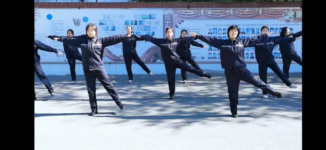 原來,是我們的美女員工們正在操練???,身著筆挺工裝的她們還在為職工廣播體操展演做最后的準備。