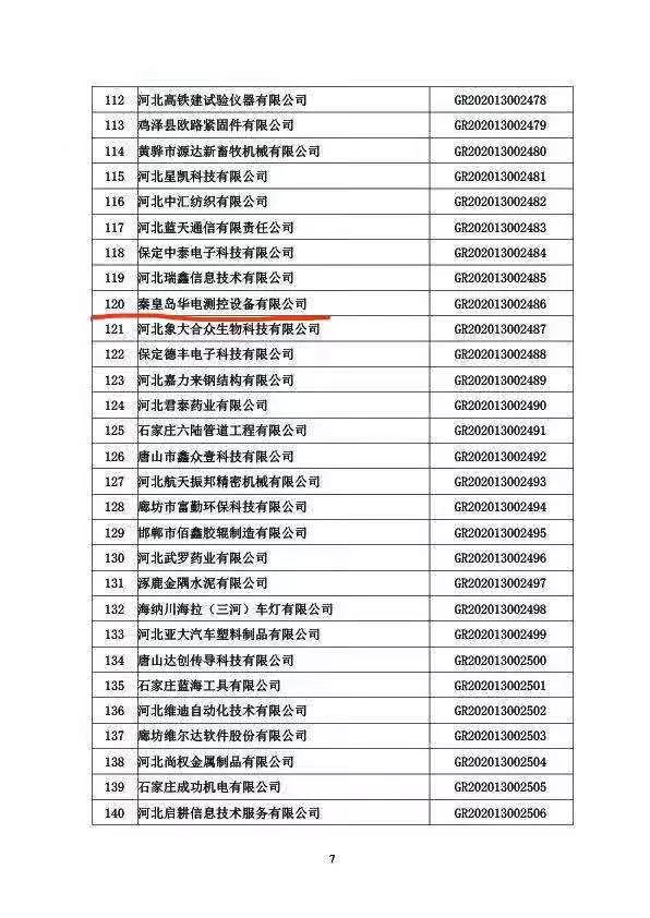 近日,秦皇島華電測(cè)控設(shè)備有限公司收到了全國(guó)高新技術(shù)企業(yè)認(rèn)定管理工作領(lǐng)導(dǎo)小組辦公室下發(fā)的《關(guān)于河北省2020年第三批高新技術(shù)企業(yè)備案的復(fù)函》(國(guó)科火字〔2020〕243號(hào)〕文件,公司第六次順利通過(guò)高新技術(shù)企業(yè)認(rèn)定。