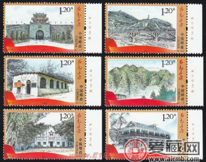 為迎接2012年中國共產(chǎn)黨第十八次全國人民代表大會的召開,配合紅色旅游,中國郵政集團公司于2012年6月30日發(fā)行了《紅色足跡》特種郵票一套。2012年6月30日,“紅色足跡”特種郵票首發(fā)式在井岡山舉行。2012-14《紅色足跡》特種郵票?小版張一共有六枚郵票組成,分別是井岡山、瑞金、遵義、會寧、延安、西柏坡六處老革命根據(jù)地的圖案,面值全部是1.20元,設(shè)計者是巧妙的運用了這種鋼筆淡彩的手法,將每一處根據(jù)地完美的展現(xiàn),并且還是小版張郵票,無論是從設(shè)計、題材、形式方面來看,這都是一套極有價值的郵票,所以收藏者一直對它的熱度沒有減少。