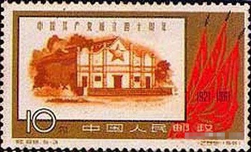 為紀(jì)念建黨40周年,1961年7月1日,郵政部門發(fā)行了紀(jì)念郵票 紀(jì)88 ,設(shè)計(jì)者為孫傳哲。全套共5枚,其中第3枚面值10分,為 中央大禮堂(瑞金),發(fā)行 400萬枚 。