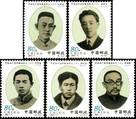 為紀(jì)念在解放全中國(guó)的革命事業(yè)中嘔心瀝血,英勇戰(zhàn)斗,壯烈犧牲的中國(guó)共產(chǎn)黨的無(wú)數(shù)英雄兒女,中國(guó)郵政在中國(guó)共產(chǎn)黨建黨80周年之際,發(fā)行了《中國(guó)共產(chǎn)黨早期領(lǐng)導(dǎo)人(一)》紀(jì)念郵票1套5枚,表達(dá)對(duì)革命先輩們的崇高敬仰。這是2001年6月28日發(fā)行的紀(jì)念郵票,設(shè)計(jì)者是王虎鳴。