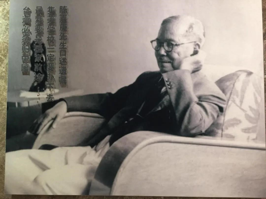 1984年2月9日,在廈門(mén)經(jīng)濟(jì)特區(qū)視察的鄧小平來(lái)到廈門(mén)大學(xué)和集美學(xué)村,并參觀了集美陳嘉庚紀(jì)念館,深為感佩?;乇本┖?,他便揮毫為即將出版的《陳嘉庚畫(huà)冊(cè)》題詞:"華僑旗幟民族光輝陳嘉庚"。這是他將毛澤東為陳嘉庚書(shū)寫(xiě)的一件條幅:"華僑旗幟民族光輝"借用過(guò)來(lái)的。這件條幅,毛澤東曾在1945年11月抗戰(zhàn)勝利后,在重慶時(shí)送給陳嘉庚的題書(shū)。