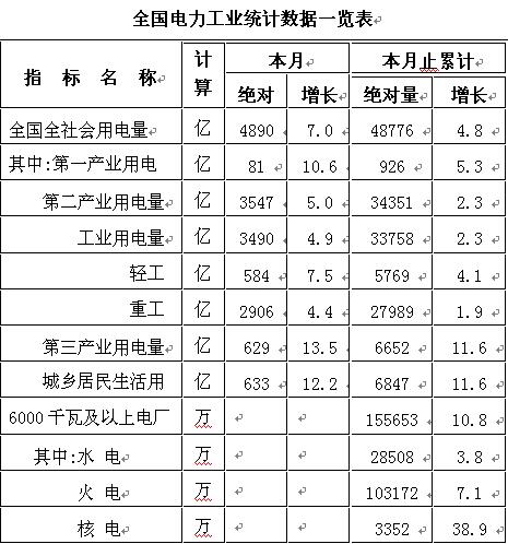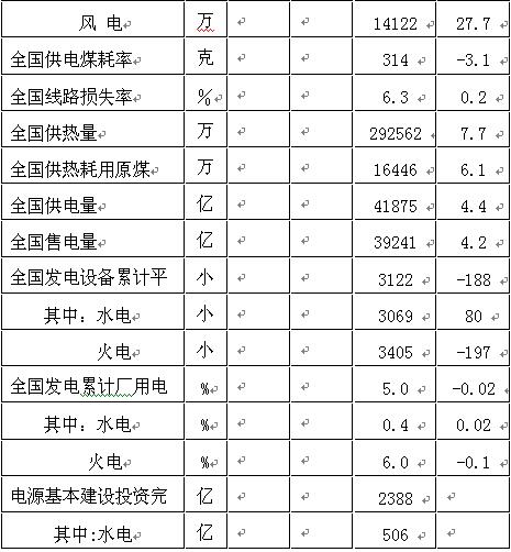 全國電力工業(yè)統(tǒng)計數(shù)據(jù)一覽表