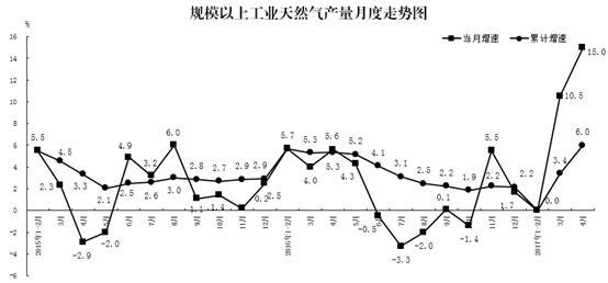 1-4月份,天然氣產(chǎn)量509.4億立方米,同比增長(zhǎng)6.0%。進(jìn)口2011萬噸[4],增長(zhǎng)5.4%。