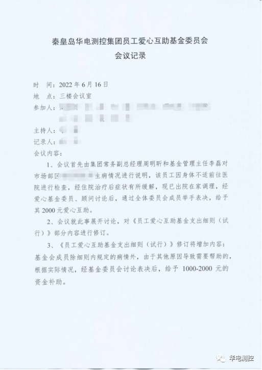 華電測控愛心互助基金為員工獻(xiàn)愛心