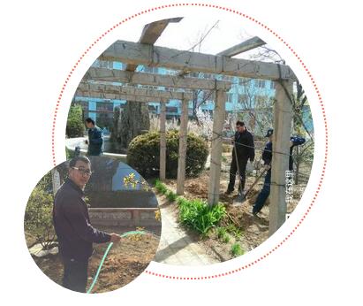 正值春暖花開、草長鶯飛之際,公司花園一派生機勃勃的景象,在公司黨支部書記兼副總經(jīng)理劉劍鋒的帶領(lǐng)下,張勇清、尹新磊、劉冬建、任有志、張靜于周六下午來到公司進行葡萄架的搭建和培植,并翻土疏松,為樹木植被澆水。