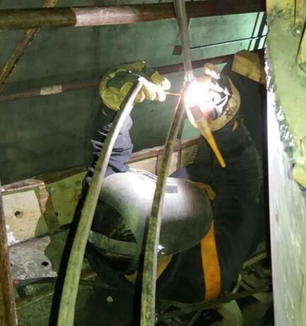此次工程時(shí)間緊張、工作量大,更加考驗(yàn)我們的是工作現(xiàn)場(chǎng)的超高溫度,經(jīng)電廠人員告知,我方施工區(qū)域的平均溫度一直處于40℃-50℃,峰值達(dá)53℃!它時(shí)時(shí)刻刻考驗(yàn)著我們的耐性,透支著我們的體力。