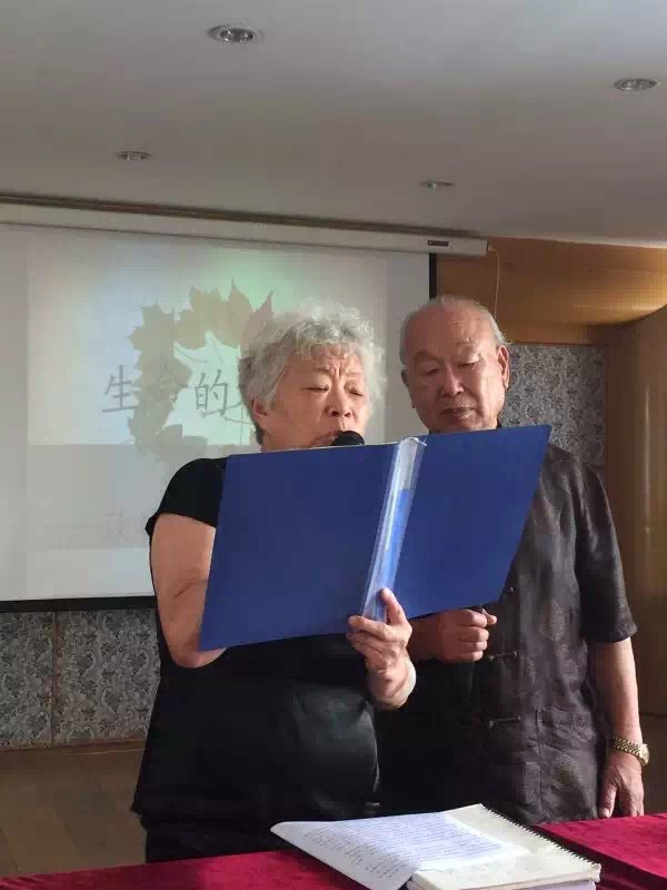 楊姨盡管已是80高齡,但精神矍鑠,聲音洪亮,腰板挺直,乍看像60來(lái)歲的人。她與高齡83歲的愛(ài)侶攜手前來(lái),盈盈淺笑,光彩照人,見(jiàn)之忘憂(yōu)。她和老伴朗誦了他們共同寫(xiě)就的詩(shī),《寫(xiě)給老伴的悄悄話》,聲情并茂,場(chǎng)面感人。然后,楊女士用中、英雙語(yǔ)作了自我介紹,語(yǔ)言流利,悅耳動(dòng)聽(tīng)。