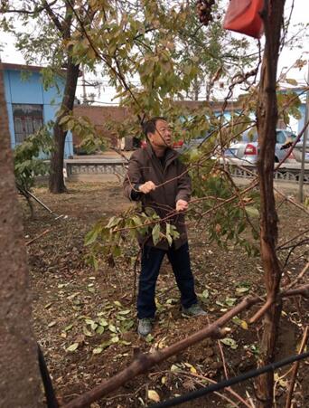 在黨支部書記劉劍鋒同志的指揮下,大家兵分兩路,不到一個(gè)小時(shí)就處理好了花園中所有的葡萄秧。勞動(dòng)過程中,大家其樂融融,有說有笑。希望這些葡萄秧們安全過冬,來年結(jié)出甜美的葡萄。