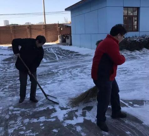 公司大院里陽光照射不到的地方,積雪還有很多,員工進進出出很不安全,1月9日上午管理部組織人員進行清雪,大家默契配合,很快就將路面清理干凈了,背陰的地方,天氣很冷,但是掃雪的熱情早已沖破嚴寒。質(zhì)檢安全部經(jīng)理劉慶明,不顧腰痛,也加入了我們,還有劉磊,因為他們的身體不好,被大家攔下了。