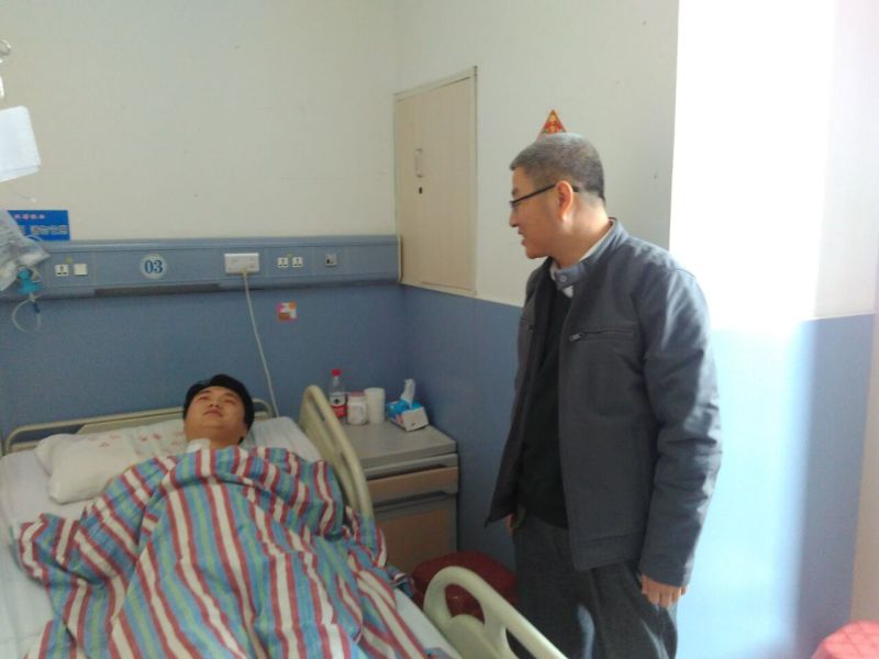 2017年2月7日上午,秦皇島市市民情感護(hù)理中心一行人由劉吉川主任帶領(lǐng),在原秦皇島市精神衛(wèi)生中心心理科主任魏華的陪同下,來(lái)到秦皇島市第一人民醫(yī)院,探望在大年初四協(xié)助公安部門(mén)對(duì)精神障礙患者進(jìn)行應(yīng)急處置受傷的90后小護(hù)士龍浩然同志,并送去了一千元現(xiàn)金和水果籃。